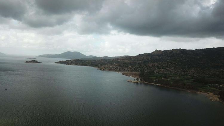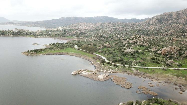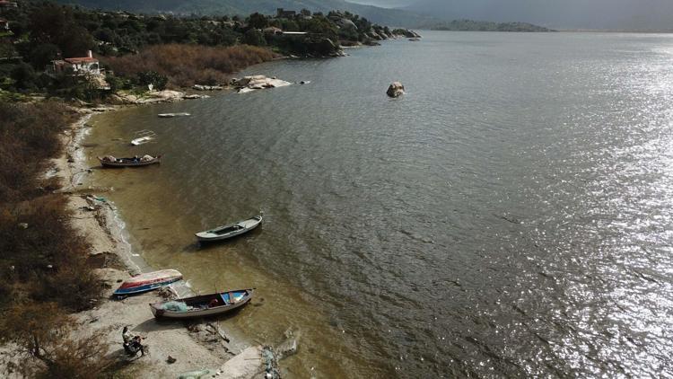 Yağmurlarla dolan Bafa Gölü, dronla görüntülendi