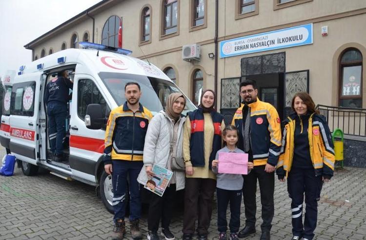 Bursa’da ilkokul 1’inci sınıf öğrencisi Yağmur Şekerci, çok merak ettiği ambulansı yakından görmek için 112 Acil Sağlık Hizmetleri İl Ambulans Servisi Başhekimliği'ne mektup yazdı. Arkadaşlarıyla ambulansa alınıp bilgi verilen Yağmur’un hayali, karne hediyesi olarak yerine getirildi.