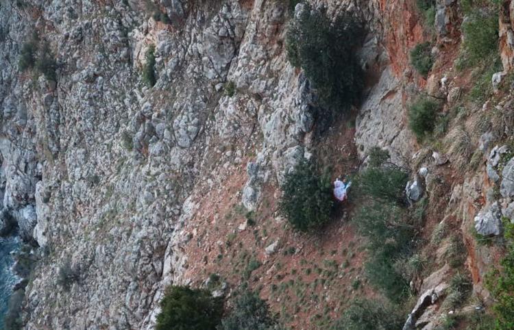 HALAT YARDIMIYLA UÇURUMDAN SARKITILARAK BOTA ALINACAK