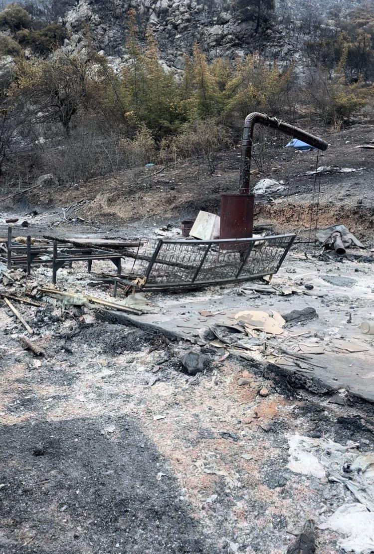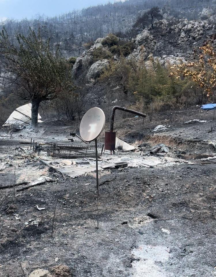 Yanan dağ evinden geriye çanak anten ile soba kaldı
