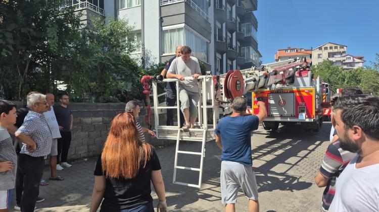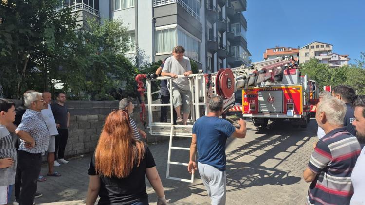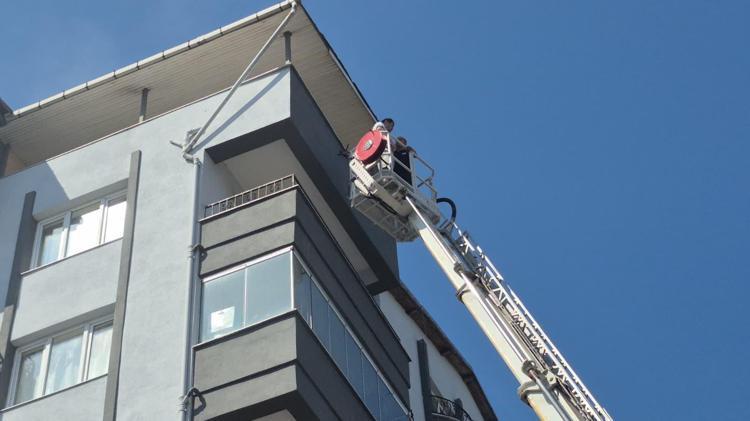 Yangın çıkan apartmanda mahsur kalan 5 kişi, itfaiye merdiveniyle tahliye edildi