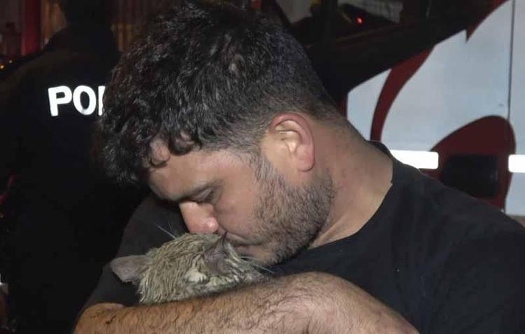 Yangında dairede mahsur kalan kedi 'Duman'ı itfaiye kurtardı