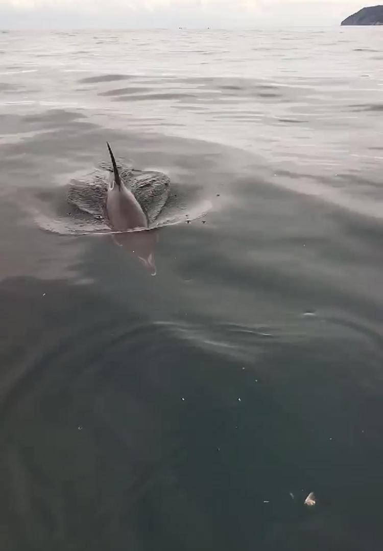 Bartın’da denize açılan balıkçılar, yanlarına yaklaşan yunusu ekmek ve domatesle besledi. Balıkçı Erol Akmısır, o anları cep telefonuyla kayda aldı.