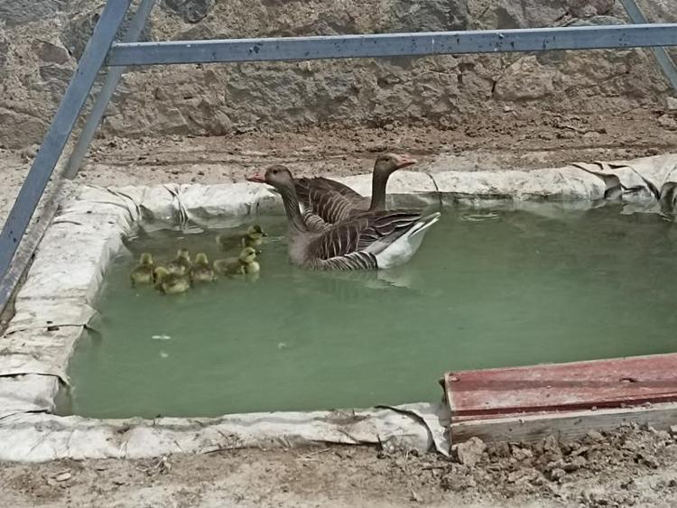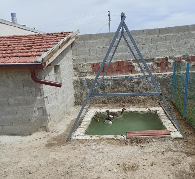 Şoför Lokman Zorlu, 2 yıl önce Eskil-Eşmekaya yolunda yaralı 3 yaban kazı buldu. 1'i tüfekle vurulmuş, diğerlerinin de kanatlarının kesildiğini gören Zorlu, kazları aracına alıp, Karapınar'a götürdü. Zorlu, önce kazları veterinerde tedavi ettirdi ardından evinin bahçesinde beslemeye başladı. Geçen süreçte kazlarından 1'inin 5 yavrusu oldu.