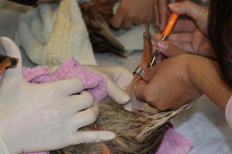 Bu halkaları hayvanların bacaklarına takıyoruz. Doğaya bırakıldıklarında uyum sağlayabiliyorlar mı kalabiliyorlar mı yaşama devam edebiliyorlar mı bunların takip edilmesi gerekiyor. Bunları da üzerindeki araba plakası gibi her bir bireye farklı kodla takılan; ama 'Türkiye' rumuzu olan halkaları takarak onların takiplerini yapabiliyoruz. Doğada halkayı gören birisinin bildirmesi ile birlikte bu türün, bireyin aslında ne kadar hayatta kaldığı, ne kadar yaşadığı ortalama olarak tahmini olarak bir yaş bilgisini bulabiliyoruz. Ya da rehabilitasyondan sonra doğaya ne kadar adapte olabildiğinin bilgisini elde edebiliyoruz" ifadelerini kullandı. (DHA)