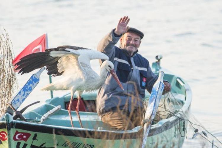 Türkiye’yi Avrupa Leylek Köyleri ağında temsil eden tek köy olan Bursa’nın Karacabey ilçesine bağlı Eskikaraağaç Leylek Köyü'nde yaşanan balıkçı ile leyleğin dostluğu, milyonlar tarafından ilgiyle takip edilen hikayeye dönüştü. Geçen 10 yılda her göç zamanı geldiği köyde, Adem Yılmaz’ın kayığına konan ‘Yaren’, bu yıl 11’inci kez geldi. Yaren Leylek'in 11’inci kez gelişi, köylüler tarafından sevinçle karşılandı. Dün leylek köyüne gelen Yaren leylek için ağlarını göle atan balıkçı Adem Yılmaz, bu sabah Yaren leylekle kayığında yılın ilk buluşmasını gerçekleştirdi. O anlar ise Doğa Fotoğrafçısı Alper Tüydeş tarafından fotoğraflandı.