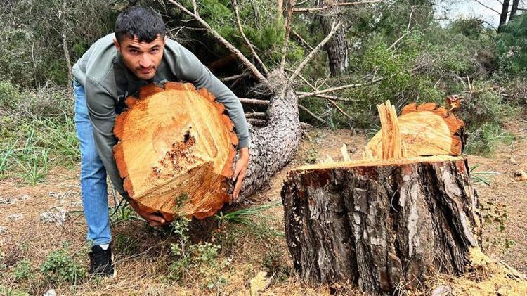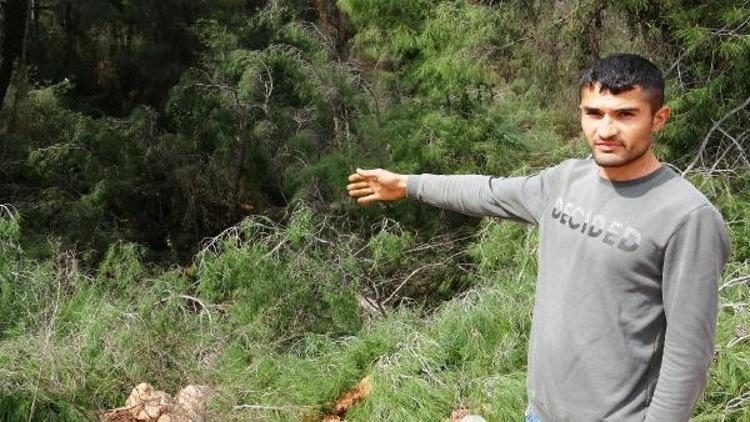 Kepez ilçesi Varsak Aktoprak Mahallesi'nde sabah saatlerinde ağaçlarla kaplı bölgedeki serasına giden Mehmet Bolat, birkaç kişinin motorlu testerelerle yarım asırlık çam ağaçlarını kestiğini gördü.