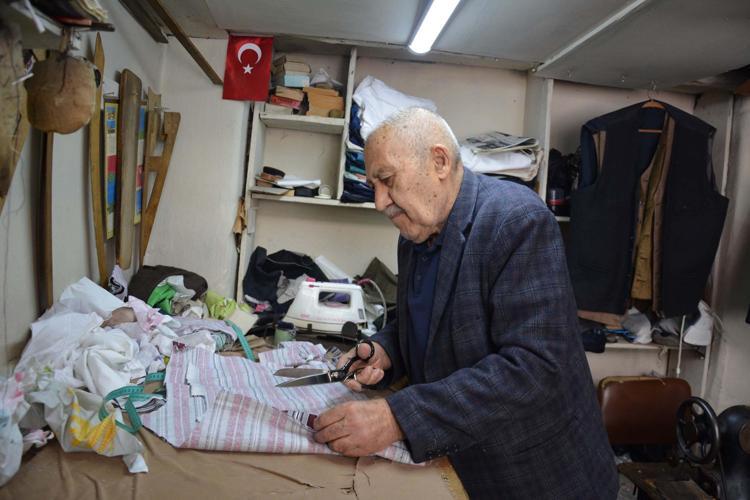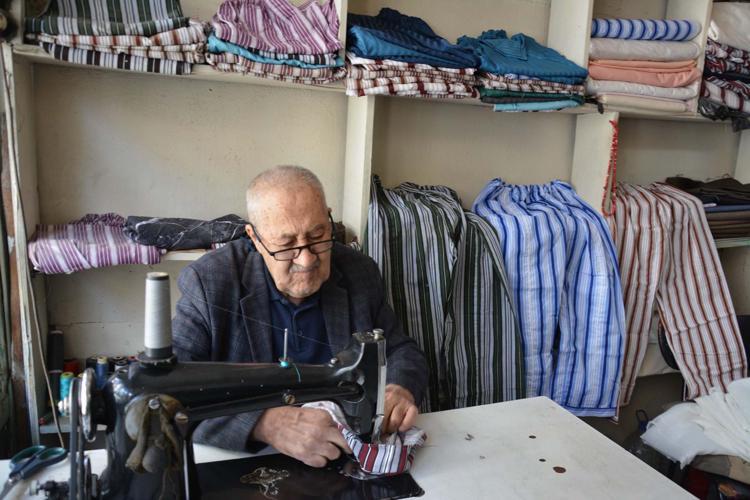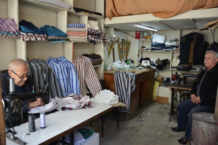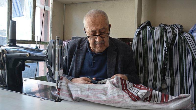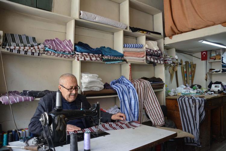 Yaşar usta, 12 metrekarelik dükkanında nostaljik çizgili pijamaları 60 yıldır üretiyor