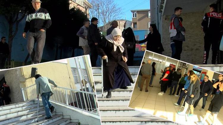 Ayağında alçı olan bir kişi ise zorlansa da merdivenleri tutarak oy kullanmaya gitti. Oy kullanmaya gelen yaşlı ve engellilere öncelik verildi.