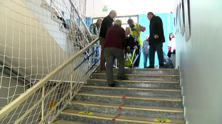 Yaşlı ve engelliler oy kullanmak için merdivenleri aştı