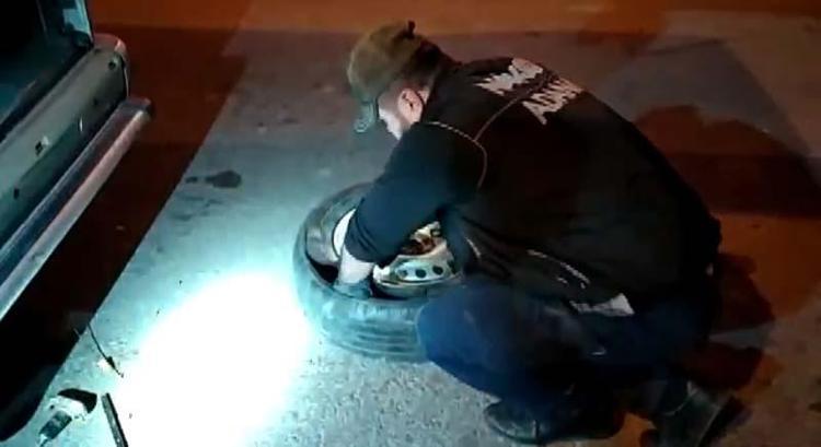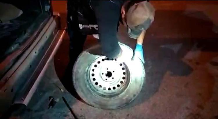 Polisin otoyolda takip ettiği şüpheli bir otomobil de uygulama noktasında durduruldu. Sürücü Y.B.’nin (32) indirildiği araçta narkotik köpek ‘Oscar’ ile arama yapıldı. Oscar’ın tepki vermesi üzerine bıçakla kesilen yedek lastiğin içinde 4 kilo esrar ele geçirildi.