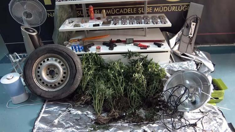 Ekipler, operasyon kapsamında gözaltına alınan V.B.’nin, Seyhan ilçesi Uçak Mahallesi’ndeki evinde Hint keneviri yetiştirip uyuşturucu imal ettiğini belirledi.