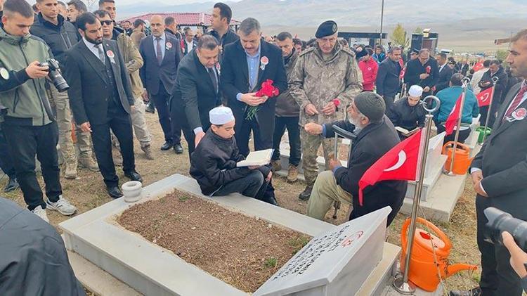 Vali Çiftçi ve beraberindekiler, törenin sonunda Kuran okuyan şehit yakınlarına başsağlığı dileyerek mezarlara karanfil bıraktı. (DHA)