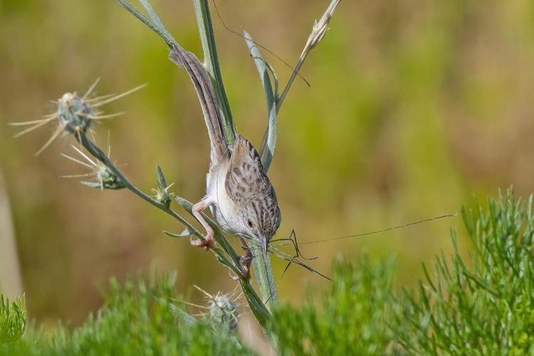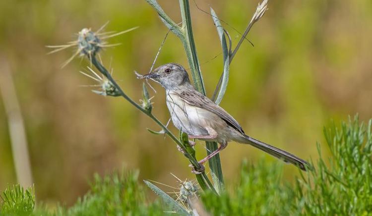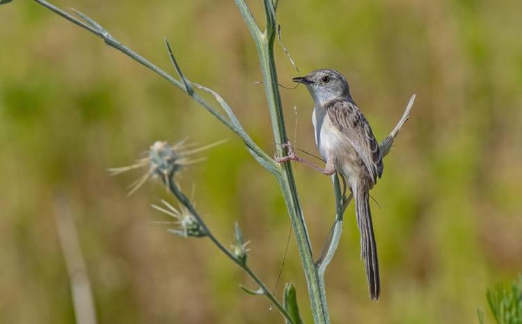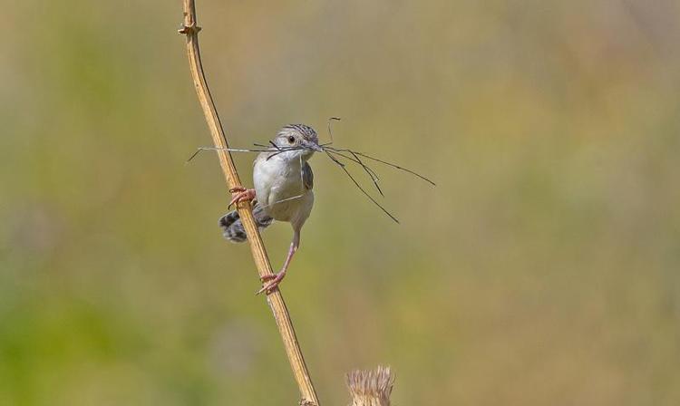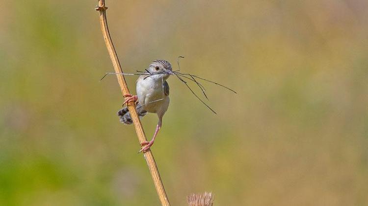 DHA Muhabiri Selim Kaya, Türkiye’nin güney kesimlerinde yerleşik kuş türlerinden olan dik kuyruklu ötleğen (Prinia lepida) yavrusunun, yuva inşa etmede kullanılan bitki liflerini gagasıyla koparma anını Diyarbakır’da Dicle Üniversitesi yerleşkesinde bulunan Kabaklı Göleti’nde fotoğrafladı.