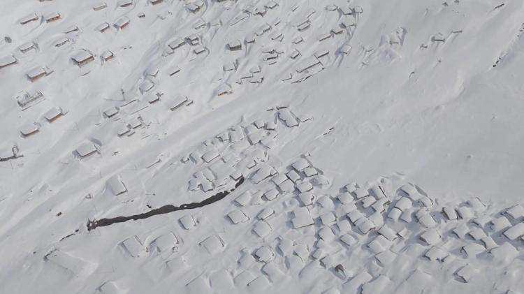 Rize’nin Çamlıhemşin ilçesine bağlı Kavrun Yaylası'nda kar kalınlığı 3 metreyi aştı. Köy evlerinin beyaz örtüyle kaplandığı yayla, dron kamerasıyla görüntülendi.