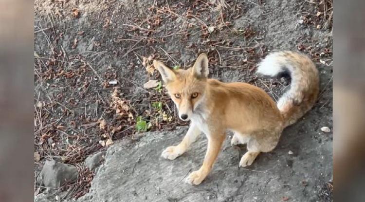 Yemekhane görevlilerinin 7 aydır beslediği kızıl tilki, işçilerin maskotu oldu