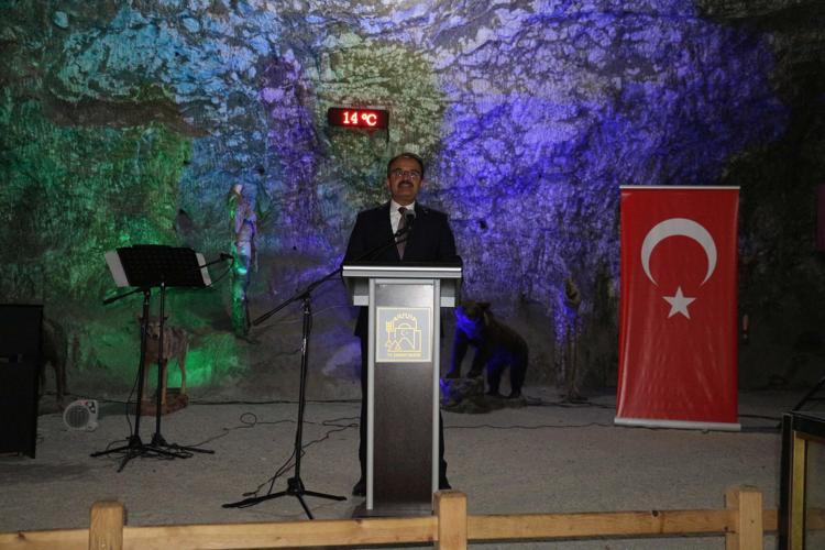 Vali Ayaz, konuşmasının devamında tuz mağarasının önemli bir değer olduğunu aktararak, "Yer Altı Tuz Şehri, kentimizin en önemli turistik değeri. Böyle anlamlı bir günde burada bulunmaktan dolayı hem ben hem de misafirlerimiz çok mutlular. Hem Yer Altı Tuz Şehrimizin tanıtımına biraz katkıda bulunalım hem de bu mekanı böyle aktivitelerle daha iyi bir şekilde değerlendirelim istedik. Şu anda masaları dolaşıyorum, gördüğüm, misafirlerimiz de biz de oluşan atmosferden gayet memnunuz. Çok mutluyuz. Bence resepsiyon için şehirdeki en uygun yeri seçtiğimizi düşünüyorum. Bugün milletimiz için çok önemli bir gün. Burası da şehrimiz için çok önemli bir yer. İkisini bugün buluşturmuş olduk. Belediye başkanımızın yürütmüş olduğu bir proje de var, inşallah kısa süre içerisinde burayı çok farklı bir şekilde, çok farklı bir aktivitelere ev sahipliği yapacak şekilde göreceksiniz. Hedefimiz burayı, iş birliği içerisinde en iyi şekilde değerlendirmek ve ülkemizin turizmine kazandırmak" diye konuştu.