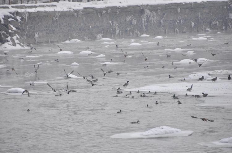 Doğu Anadolu Bölgesi’nde etkili olan soğuklar, yaban hayatını da olumsuz etkiledi. Termometrelerin gece eksi 25 dereceye kadar düştüğü Kars’ta, kentin içinden geçen Kars Çayı’nın yüzeyinin büyük bölümü buz tuttu. Akıntının etkisiyle donmayan küçük alanlar ise yaban ördeklerinin yaşam alanı oldu.