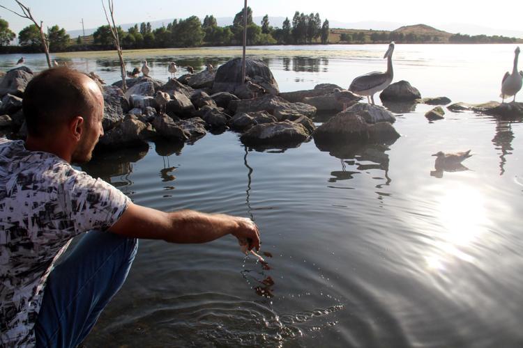 Pelikanları sahiplenen Kurtuluş Kılıç, "Yavruyken yaralı ve aç bir şekilde bulup getirdiğimiz pelikanların bakımını üstlendik. Elimizle beslediğimiz kuşlar bizi terk etmeyerek adeta iş yerimizin ve Çıldır Gölü'nün maskotu oldu.