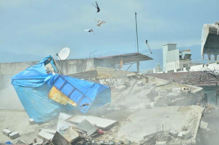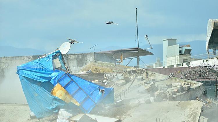 Hatay'da, depremde ağır hasar gören 2 katlı binanın yıkımı sırasında çatıda bulunan kümesteki güvercinler, son anda uçarak kurtuldu. Yıkım ekibi, kümeste kuşların olduğunu bilmediklerini savundu.