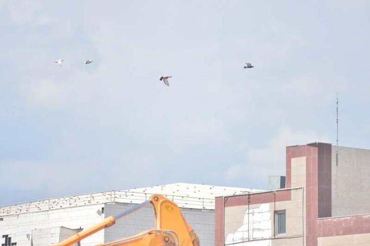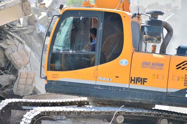 Operatör daha sonra binayı yıkmaya başladı. Bu sırada çatıda, iş yeri sahibine ait olduğu sanılan güvercinlerin kümesi de yıkıldı.