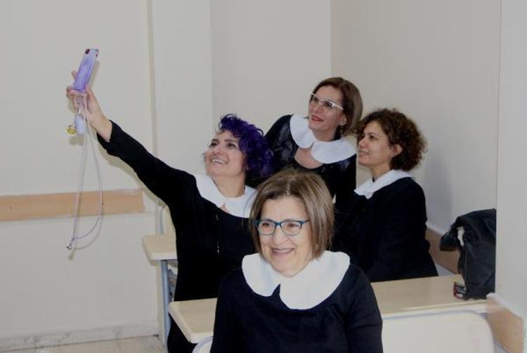 Yıllar sonra siyah önlük ve beyaz yakalarıyla ders işlediler
