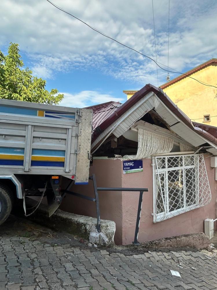 Olay, dün saat 15.00 sıralarında Altınordu ilçesi Aziziye Mahallesi Yamaç Sokak’ta meydana geldi. Yokuş çıkarken geri kayan kamyon, yaklaşık 20 metre aşağıdaki yol kotunun altındaki Ayşegül Yılmaz'a ait eve çarptı. Yılmaz'a ait evin duvarları yıkıldı, çatıda hasar oluştu. İçeriden ve dışarıdan ağır hasar alan ev, kullanılamaz hale geldi.