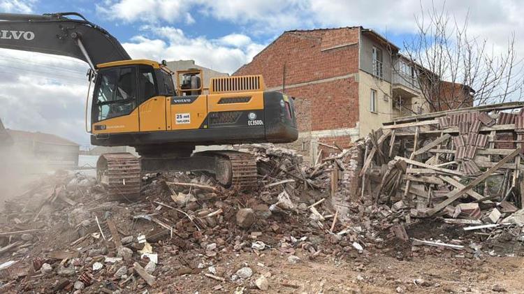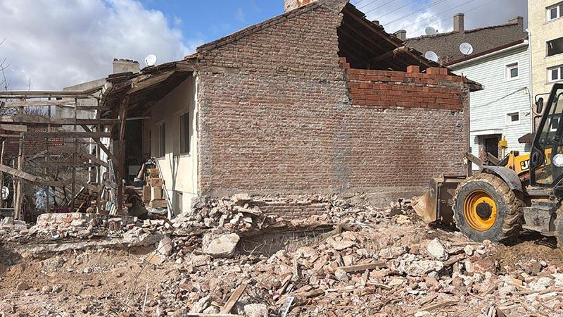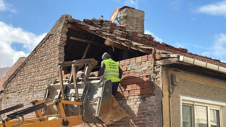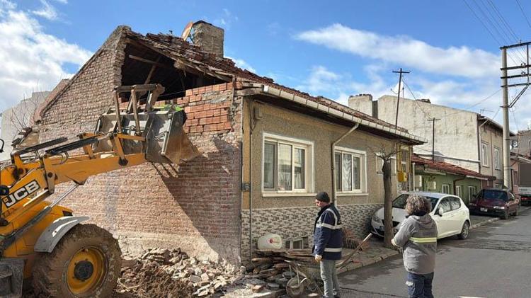 Eskişehir'de yol genişletme çalışması için yapılan yıkım sırasında, bitişik nizamdaki müstakil evin bahçe duvarı ve çatı bölümünün bir kısmı yıkıldı.