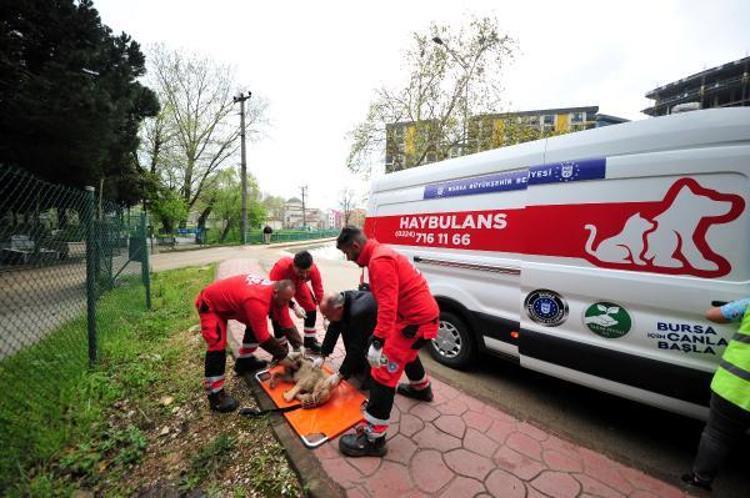 Bursa'da yaralı hayvanların nakli konusundaki sıkıntıları çözmek isteyen Büyükşehir Belediyesi Veteriner Hizmetleri Şube Müdürlüğü'nce 'haybulans' adı verilen nakil ve acil müdahale aracı hizmete alındı. 9 veteriner hekim, 4 veteriner teknikeri ve 12 teknik personel, 3 haybulans ile sahada görev yapıyor. Veteriner Hizmetleri Şube Müdürü Semih Öz, "Şu anda 17 ilçede hizmet veriyoruz. Tüm ihbarları değerlendiriyoruz" dedi.