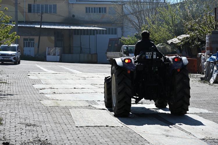 Demirci'de tezgahlardan çıkan yeni halılar, güneş altında yollara serilerek belirli bir süre bekletiliyor. Bu süreçte kamyon, otomobil ve motosikletlerin üzerinden geçtiği halılar; dokusunun incelmesi ve renklerinin doğal şekilde solmasıyla eski bir görünüm alıyor. Halılar, yaklaşık 10 gün boyunca trafik altında tutulurken; belirli aralıklarla ters çevrilerek her iki yüzünün de eşit şekilde eskitilmesi sağlanıyor. Araçların lastik baskısıyla düğümleri birbirine kenetlenen halılar, incelmiş dokusuyla farklı bir form kazanıyor. Sürecin ardından yollardan toplanan halılar, tozdan arındırılmak amacıyla üç kez yıkanarak temizleniyor.