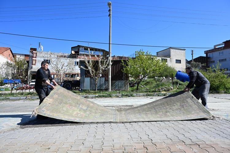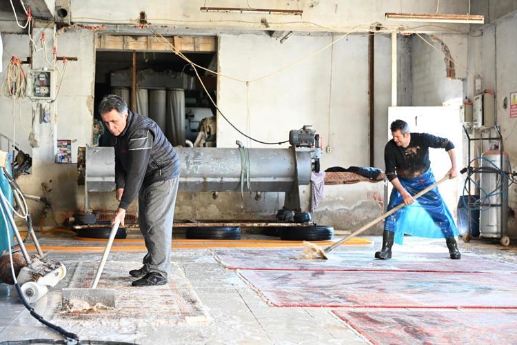 İşletme sahibi Ali Sarı, 30 yıldır halı yıkama, son 10 yıldır da halı eskitme işi yaptığını belirtip, "Önce yıkamasını yapıp yola serdiğimiz halılar, 10 gün boyunca orada kalıyor. Üzerinden araçlar geçtikçe düğümler birbirine yapışıyor ve halı doğal bir şekilde eskiyor. Bu işlemin ardından halıları en az 3 kez yıkayıp dezenfekte ediyoruz. Kurutma, çakım ile gerdirme ve son rötuş tıraşının ardından satışa hazır hale getiriyoruz" dedi. Eskitilen halıların yurt dışına gönderildiğini belirten Sarı, özellikle Avrupa ve Amerika pazarından talep gördüğünü dile getirerek, "Amerika, İngiltere, Kanada ve Almanya gibi ülkelere ihraç ediyoruz. Avrupa eskitilmiş halıyı tercih ediyor ancak doğal yün olması ve kimyasal kullanılmaması gerekiyor. Bu yöntemle halıya 50-60 yıllık bir görünüm kazandırıyoruz" diye konuştu.