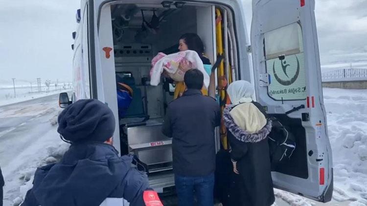 Ekipler, daha sonra bebek ile annesini paletli ambulansa aldı. Bebek ile annesi daha sonra kara yolunda bekleyen ambulansa taşındı. Damar yolu açılan ve soğuk uygulama yapılan bebek, Muş Devlet Hastanesi'ne götürüldü.