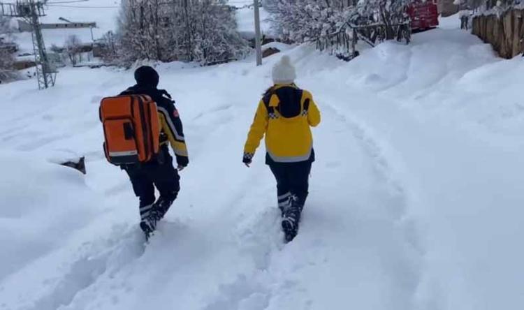 Muş'ta kardan kapanan köy yoluna paletli ambulansla ulaşan sağlık ekipleri, ateşlenen 6 aylık bebeğe müdahale edip, hastaneye götürdü.