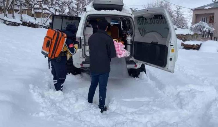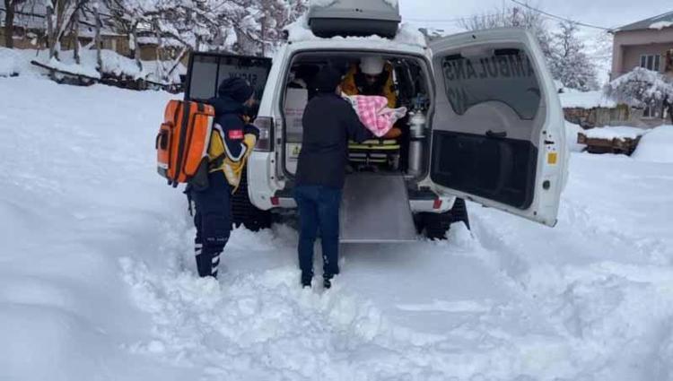 Yolu kapalı köyde hastalanan 6 aylık bebeğe, paletli ambulansla ulaştılar