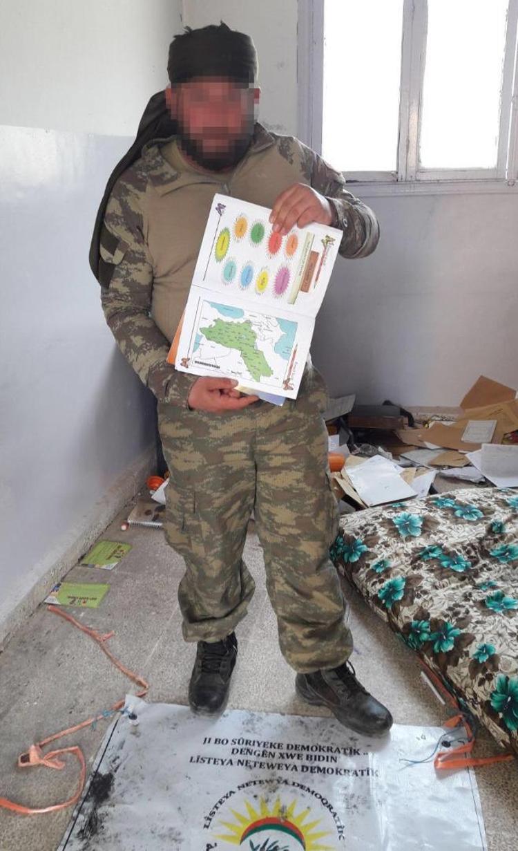 Suriye'nin Afrin kentine bağlı Ömer Uşağı köyünde bir ilkokulda ele geçirilen YPG'li teröristlere ait hücum yeleklerinde, terör örgütü PKK'nın elebaşı Abdullah Öcalan'ın fotoğrafının bulunduğu armanın dikili olduğu görüldü. Öğrencilerin ders kitaplarında ise Türkiye'nin güneydoğu ve doğusu ile Suriye, İran ve Irak'ın da bazı kentlerini içine alan 'sözde' Kürdistan haritası yer aldığı ortaya çıktı.
