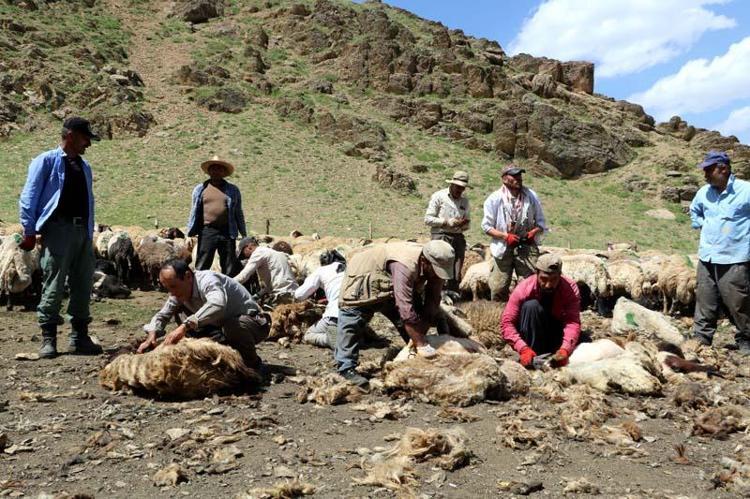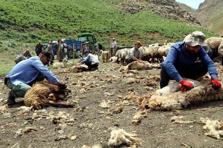 Hakkâri'nin Yüksekova ilçesinde havaların ısınmasıyla yaylalara çıkan besiciler, Cilo Dağı eteklerinde koyunların yünlerini kırkıp yazlık bakımlarını yapmaya başladı. İmece usulü yardımlaşan besiciler, yünü satıp, gelir elde ediyor.