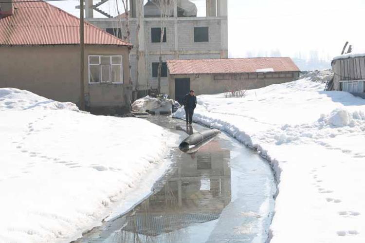 İlçede etkili olan karla karışık yağmurun ardından rögarlar taştı, Yeni Mahalle'deki bazı evler su altında kaldı. 5 kişilik Dilce ailesi de su altında kalan evleri için yardım istedi.