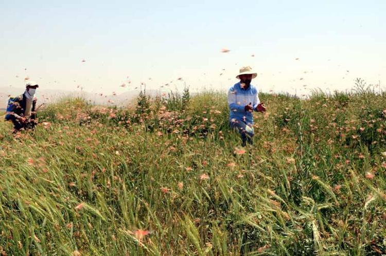 Çekirgeler, buğday tarlalarımızı istila etmiş durumda. Bu yıl bereketli bir sezon geçiriyorduk. İyi verim alacağımızı düşünüyorduk. Ancak 3 haftadır çekirgelerin verdiği zarar büyük boyutlara ulaştı" diye konuştu.