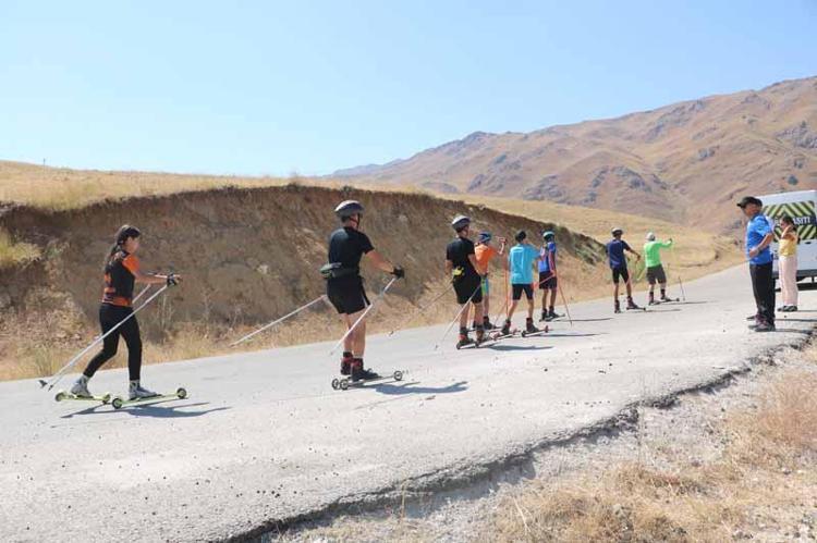 Genç sporcuları müsabakalara hazırlayan Yüksekova Tekerlekli Kayak Takımı Antrenörü Şefik Yaşar, "Yazın genelde tekerlekli kayak, baton ve güç çalışmalarını yapıyoruz. Türkiye Kayak Federasyonu'nun etap yarışlarına hazırlık yapıyoruz. Etap yarışlarından sonra Türkiye şampiyonası var. Bizler de köy yollarında hazırlanıyoruz.