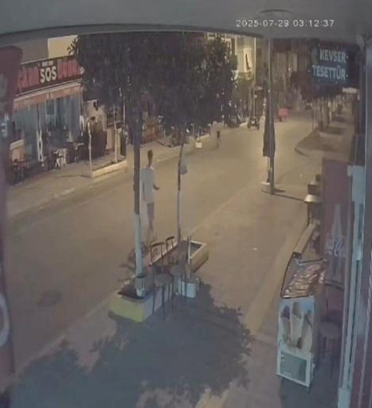 Mersin'in Anamur ilçesinde bir iş hanının içinde yüksekten düşen Eyüp Can Güner'in (12) ölmeden önce sokakta kendisini kovalayan Necmettin U.'dan (24) kaçtığı anlara ilişkin güvenlik kamerası görüntüleri ortaya çıktı.