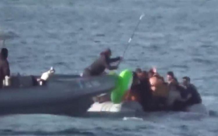 Sahil Güvenlik botundaki Yunan askeri, demir sopayla göçmenlerin botunu batırmaya çalışırken görüntülendi. Ölüme terk edilen kaçak göçmenler, Türk Sahil Güvenlik Komutanlığı ekiplerince kurtarıldı.