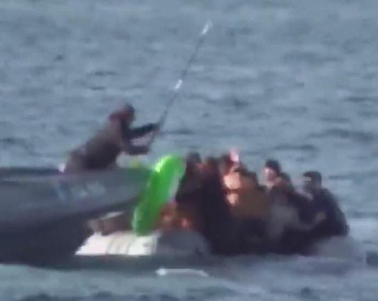 Sahil Güvenlik botundaki Yunan askeri, demir sopayla göçmenlerin botunu batırmaya çalışırken görüntülendi. Ölüme terk edilen kaçak göçmenler, Türk Sahil Güvenlik Komutanlığı ekiplerince kurtarıldı.