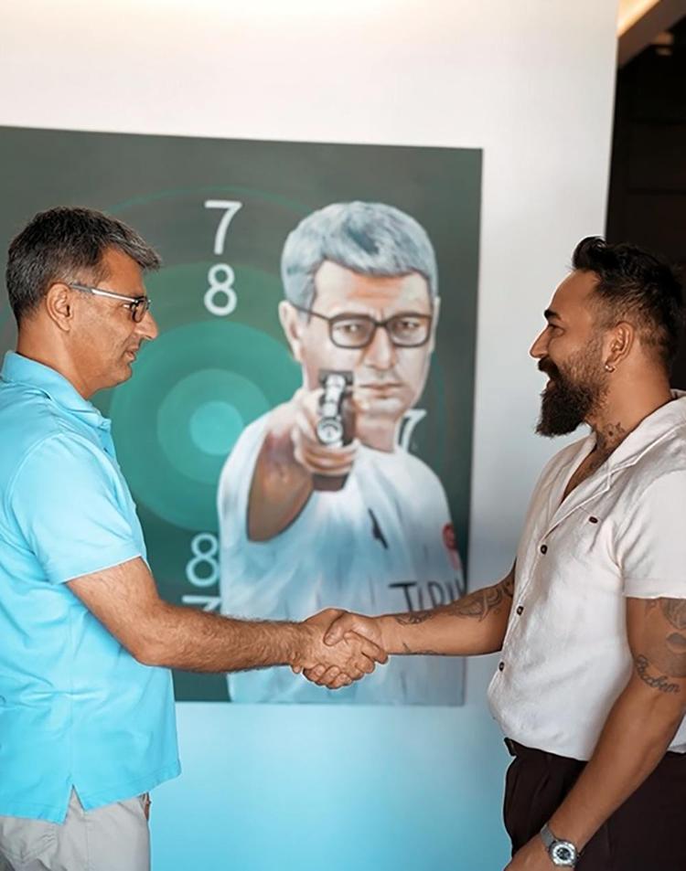 Abdullayev, hedef tahtası kısmını bilerek boş bıraktığı tabloyu önceki gün İstanbul'da buluştuğu milli atıcıya hediye etti. Buluşmada, Dikeç'in canlı yayında yapacağı atışla tabloyu tamamlayacağı açıklandı.