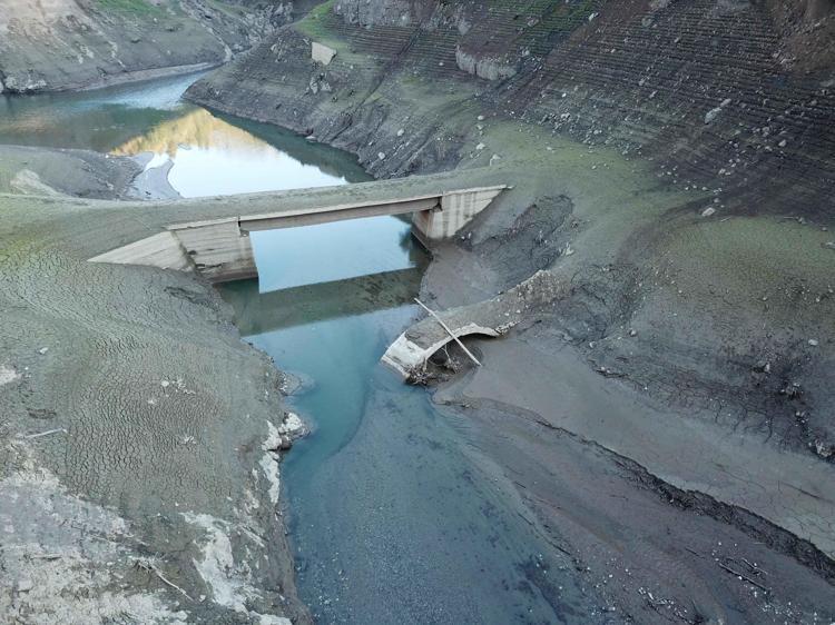 Baraj yapıldıktan sonra su altında kalan, köyleri birbirine bağlayan köprüler de gün yüzüne çıktı.