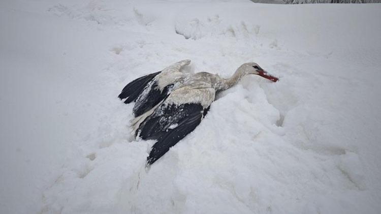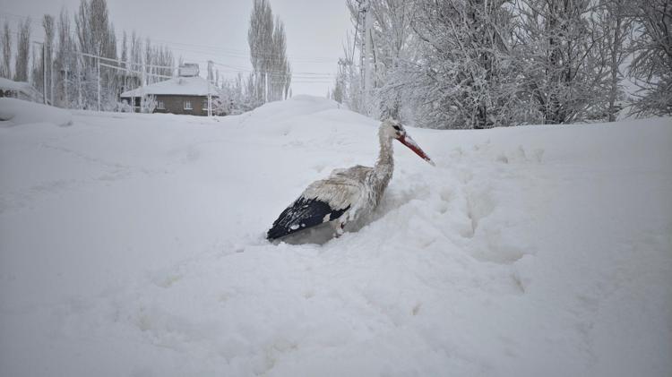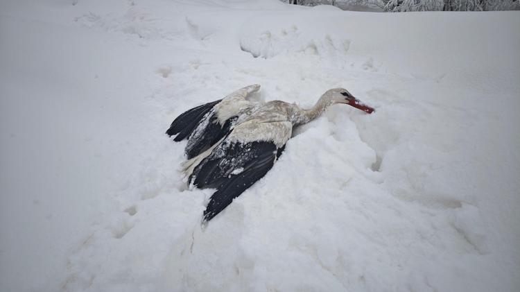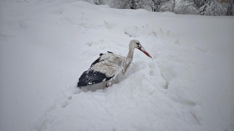 Yuvasından düşüp, kanatları donan leyleği kurtardı