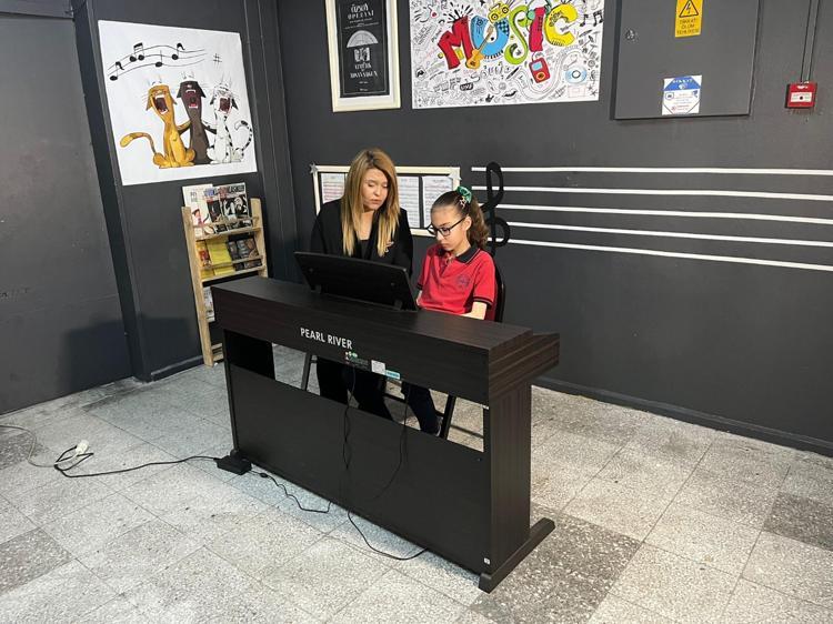 Müzik Öğretmeni Simge Göktaş ise "Geçen sene okul Müdürümüz Fuat Altındağ, desteği ile gitar aldırıp, okulumuzdaki tüm çocuklarımızın enstrümana dokunmasını istedim. 23 tane gitarımız var ve çocuklarımız çalmaya başladı. Bu yıl da İl Milli Eğitim Müdürlüğü ve Çiğli İlçe Milli Eğitim Müdürlüğü'nün destekleri ile bize piyano hediye edildi. Böylelikle çocuklar artık duygularını ifade etmeye başladılar. Müziği bir araç olarak kullanıp, kendilerini ifade ediyorlar. Tüm bu öğrenciler arasından Belinay, başarısıyla sıyrıldı. Belinay, yan okulumuzdaki ilkokuldan gelen öğrencimiz. Şu anda 7'nci sınıfa gidiyor ve yüzde 5 oranında görme yetisine sahip. 5'inci sınıfta melodika çalmaya başladı ve bu yıl piyanonun gelmesi ile müzik hayatı başka yola evrildi" dedi.