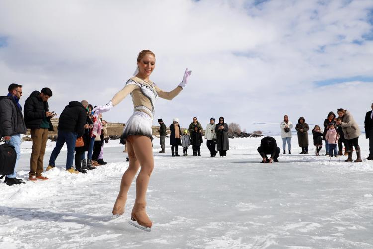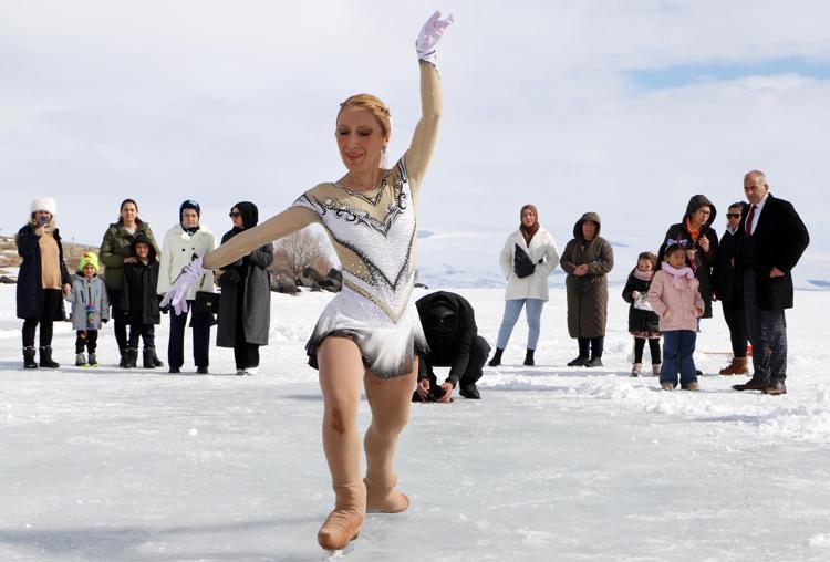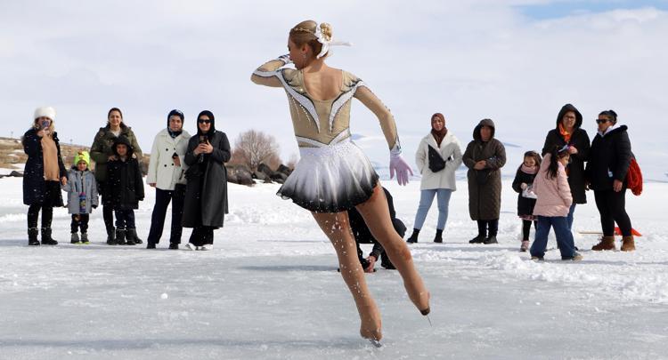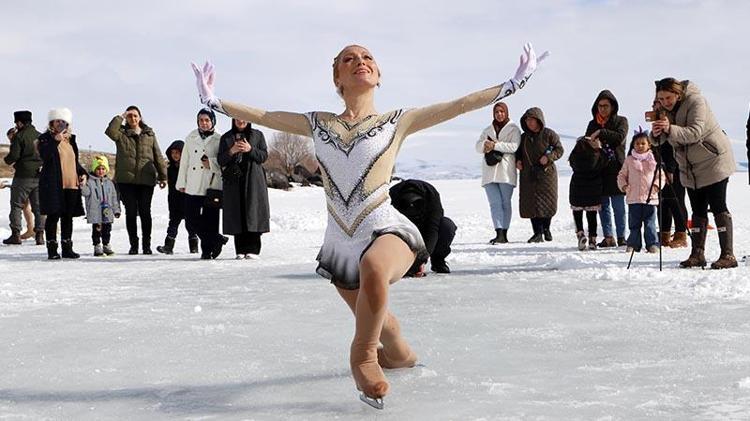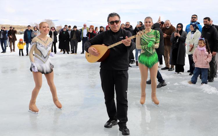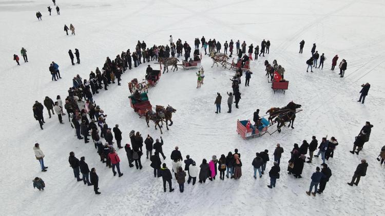 Yüzeyi buz tutan Çıldır Gölü'nde 'kurtuluş' dansı