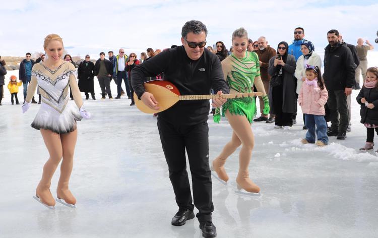 Programın bir bölümünde de Arıcı ve Sırma eski ses sanatçılarından olan Belediye Başkanı Faruk Demir'in çaldığı saz eşliğinde gösteri yaptı. Arıcı ve Sırma'ya teşekkür eden Başkan Demir, "İki dünya şampiyonumuzu bu yıl kurtuluş törenlerinde ağırlıyoruz. Kışın yüzeyi tamamen buzla kaplanan Çıldır Gölü'ne çıkıp gösteri yaptılar. Ben de kısa bir süreliğine saz ve sözle eşlik ettim" dedi.