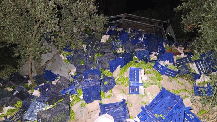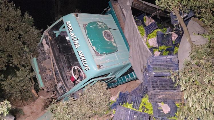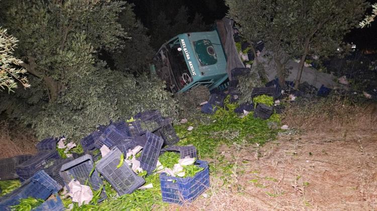 Kaza saat 20.30 sıralarında Bayırköy yolunda meydana geldi. Enis Akkılıç idaresindeki 45 AKE 766 plakalı dolmalık ve sivri biber yüklü kamyon, Orhangazi istikametine seyir halindeyken virajda kontrolden çıktı. Yol kenarındaki zeytinliğe savrulan kamyon, yaklaşık 40 metre sürüklendikten sonra devrildi.