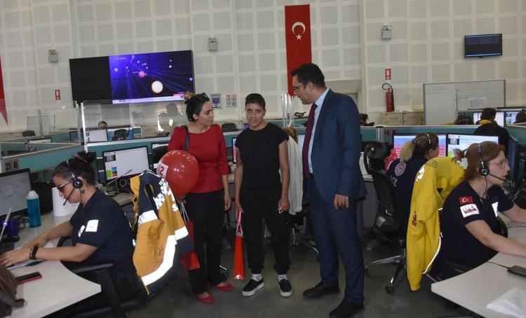 Merkez yöneticileri Erol ve ablası Havin Kandemirci'yi (32) merkezde ağırladı. 112 Acil Çağrı Merkezi'ni ilgiyle gezen Erol, arama yaptığı çalışanlarla yüz yüze tanıştı. Erol'a yaptığı asılsız ihbarların başka hastalar için yaratabileceği tehlikeler anlatılıp, oyuncak telefon hediye edildi.